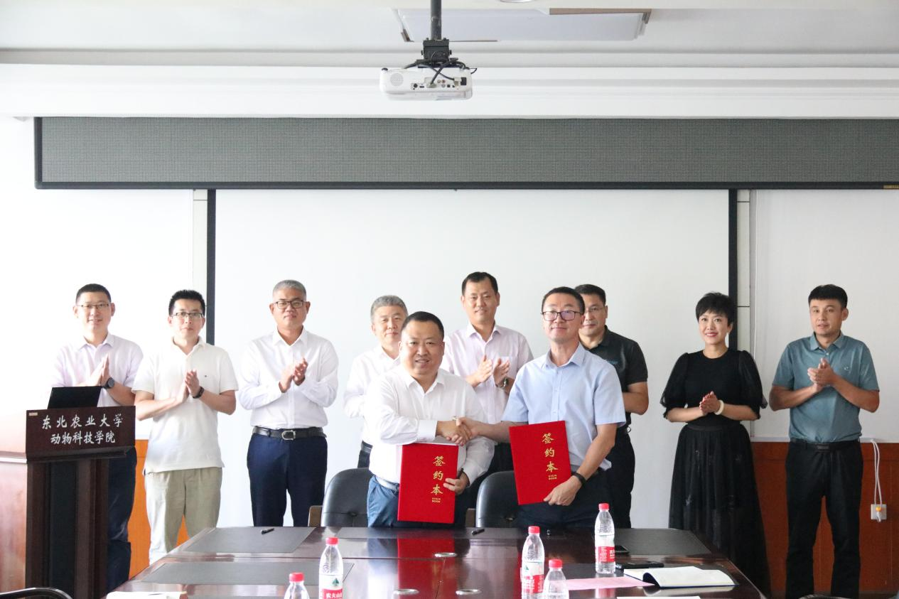 朱志猛在讲话中表示,东北农业大学是一所“以农科为优势,以生命科学和食品科学为特色,农、工、理、经、管等多学科协调发展”的国家“211工程”重点建设大学和“世界一流学科”建设高校,动科学院在全校的社会服务工作方面表现突出,特别是成立了东北农业大学健康养殖研究院以来,已经与国内多家知名大型畜牧企业达成战略合作,东农学子一直在助推畜牧行业的振兴与发展。学校的社会服务工作思路是政府搭台,企业唱戏,高校助力,百姓受益。哈尔滨农担与动科学院签约后,学校将把握新发展阶段,贯彻新发展理念,构建新发展格局,与企业携手并肩,为乡村振兴做出新的、更大的贡献。