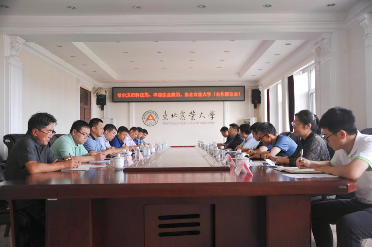 8月27日下午,哈尔滨市科技局、华源实业集团、东北农业大学产学研合作座谈会在我校举行。哈尔滨市科技局副局长刘修宽、成果处处长宋立海、农村与社会发展科技处处长李文义、市场办主任陈贵斌、成果处一级调研员金辉,华源实业集团董事长吴章祝、澳中农业协会会长姜彦、华源农业(黑龙江)有限公司副总经理隋智旭,我校副校长刘竹青,新农村发展研究院院长朱志猛、大学科技园与产业管理中心主任王磊、农学院院长陈庆山、科技处副处长寇胜利、动科学院副院长姚玉昌、动科学院教授谢小来、食品学院粮食工程系主任李良、农学院教授王绍东参加会议。会议由朱志猛主持。