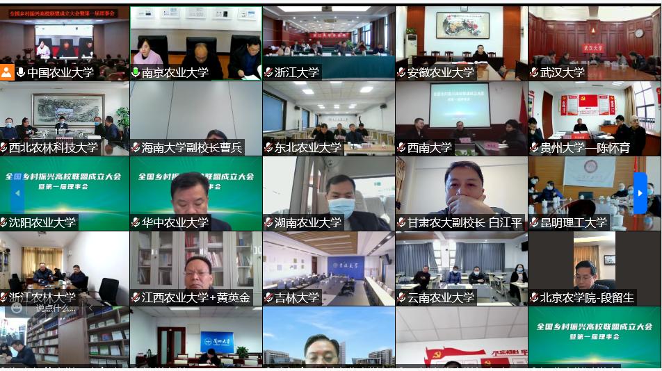 会上,经42所成员高校共同推选,中国农业大学当选为理事长单位,浙江大学等21所高校被选为副理事长单位,我校与北京林业大学、中央民族大学等15所高校共同被选为常务理事单位,北京农学院等5所高校为联盟理事单位。理事会表决通过了《全国乡村振兴高校联盟章程》。