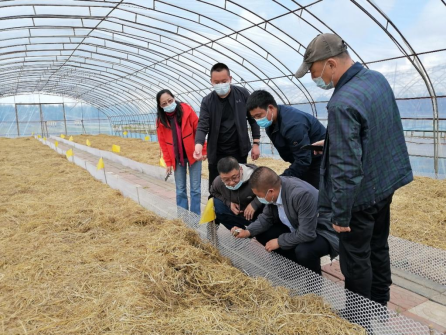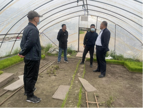 专家组现场查看“水稻育秧棚二次利用”项目的农户育秧棚