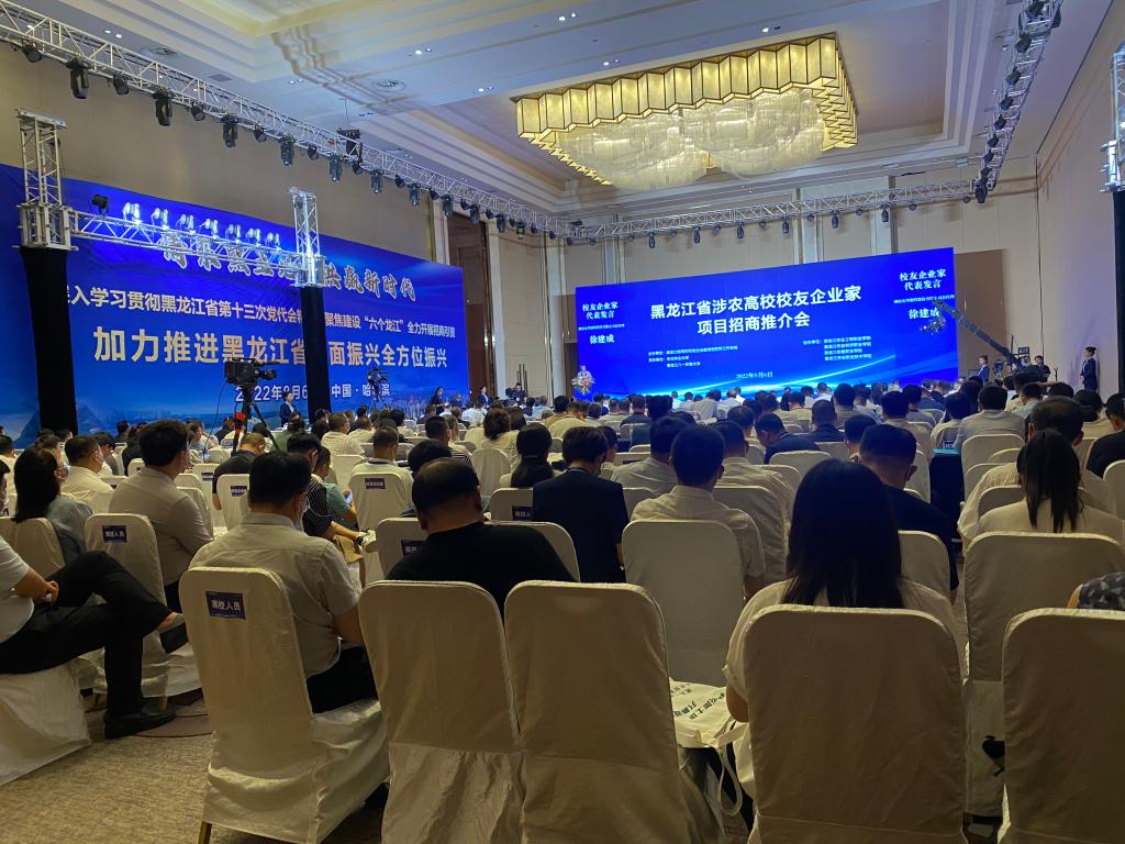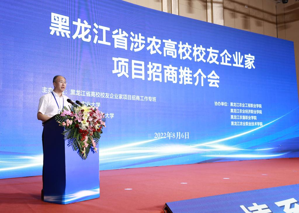 我校党委书记李长生代表涉农高校致辞。李长生表示,作为科技创新的前沿和高端人才的阵地,全省涉农高校始终把助力龙江农业农村现代化作为重要的职责使命,认真学习贯彻习近平总书记重要讲话特别是对我省的重要指示批示精神,深入贯彻落实省第十三次党代会精神,坚持以立德树人为根本、以强农兴农为己任,围绕国家所需、龙江所要、学校所能和未来所向,对标我省科技农业、绿色农业、质量农业和品牌农业建设需要,全面落实现代农业振兴计划,充分发挥高校人才聚集、科技引领和社会服务工作优势,推动龙江坚定不移扛起国家粮食安全“压舱石”和农业现代化建设排头兵的重大政治责任。自2021年开展校友招商工作以来,6所涉农高校高度重视、大力宣传、主动作为,广大校友企业家心系母校、积极响应、鼎力支持,校友招商工作取得了良好成效,为龙江经济发展汇聚了磅礴力量,为龙江产业振兴做出了重要贡献。接下来,学校将更加注重人才培养和科技创新,更加注重社会合作和成果转化,更加注重校企合作和校地合作,并努力为大家服好务,当好校友企业家来省投资的“桥梁”,做好龙江招商引资的“纽带”,拿出更多更好的科研成果和转化项目与校友通力合作,为校友招商项目提供技术支持、智力支撑和人才保障,让科研成果惠及龙江大地,让“校友经济”成为龙江招商引资换道超车的最佳助力,实现校地企更加广泛、更深层次、更为紧密的交流合作,为龙江全面振兴全方位振兴贡献全部力量。