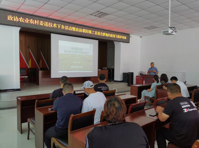 崔国文教授在朝阳镇开展了关于退化耕地的保护和修复培训,分别从东北黑土区地理分布、黑土利用现状、黑土耕地退化特征、退化黑土耕地保护修复方法以及草田轮作技术等方面作了详细讲解,现场交流互动气氛热烈,增强了农民对于保护好黑土地“大熊猫”思想认识和了解了科学种植的方法。