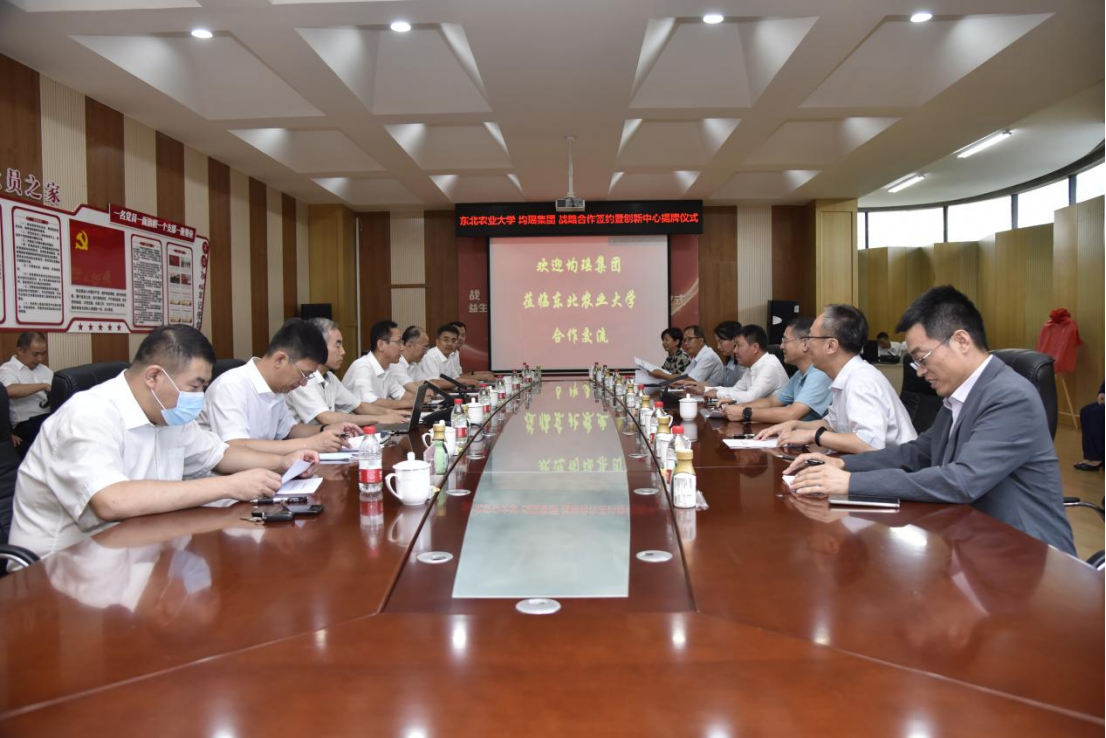 8月6日下午,我校与均瑶集团战略合作协议签约仪式在音乐厅212室举行。均瑶集团总裁王均豪、集团大健康研发总监叶亚明、集团大健康黑龙江省级经理石增敏,我校党委书记李长生、校长付强 ,副校长孙占峰、刘竹青,科学技术处处长寇胜利、新农村发展研究院院长朱志猛、科技园与产业管理中心主任王磊,食品学院院长姜毓君、副院长刁铁军及食品学院相关专家参加会议。签约仪式由我校党委书记李长生主持。