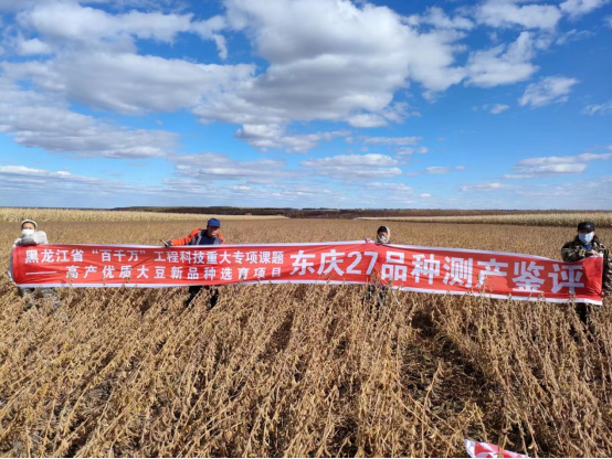 近日,我校邀请大豆专家组对黑龙江省“百千万”工程科技重大专项“高产优质大豆新品种选育”和农业部大豆产业技术体系东北早熟品种改良团队“大豆绿色增产技术研究和集成示范”重点任务的大豆新品种“东庆27”示范田进行测产验收。经专家组测产,平均亩产达到257.8公斤。