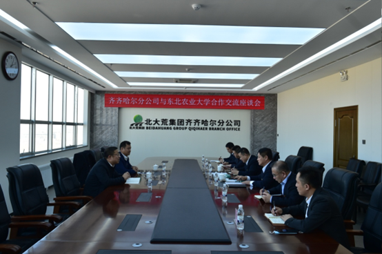 3月1日,北大荒农垦集团齐齐哈尔分公司与东北农业大学合作交流座谈会在齐齐哈尔市召开,我校社会合作与成果转化中心(新农村发展研究院)主任(院长)朱志猛、副主任(副院长)李其林代表学校参加会议,与北大荒农垦集团齐齐哈尔分公司党委副书记、总经理侯庆波,党委委员、副总经理付余仁等进行了交流座谈。