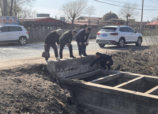 崔建军现场介绍了新立沟桥基本情况,该水利设施位于民强村三家子屯伏尔加庄园南侧,上游有泉眼形成常年流水。新立沟桥渡槽高于排水沟,且下游渡槽式排水设施老旧,无法满足排水需求,导致流水大量外溢,造成冬季溢水结冰问题,对伏尔加庄园冬季冰雪旅游产生了严重影响。春季冻冰融化时,水流量激增,导致237户村民共计600人水井房、农田、饮用水、民居受到严重影响,附近企业厂房被淹,来往车辆无法正常通行,严重影响居民正常生活和企业正常生产,是镇政府急难愁盼的民生问题。
