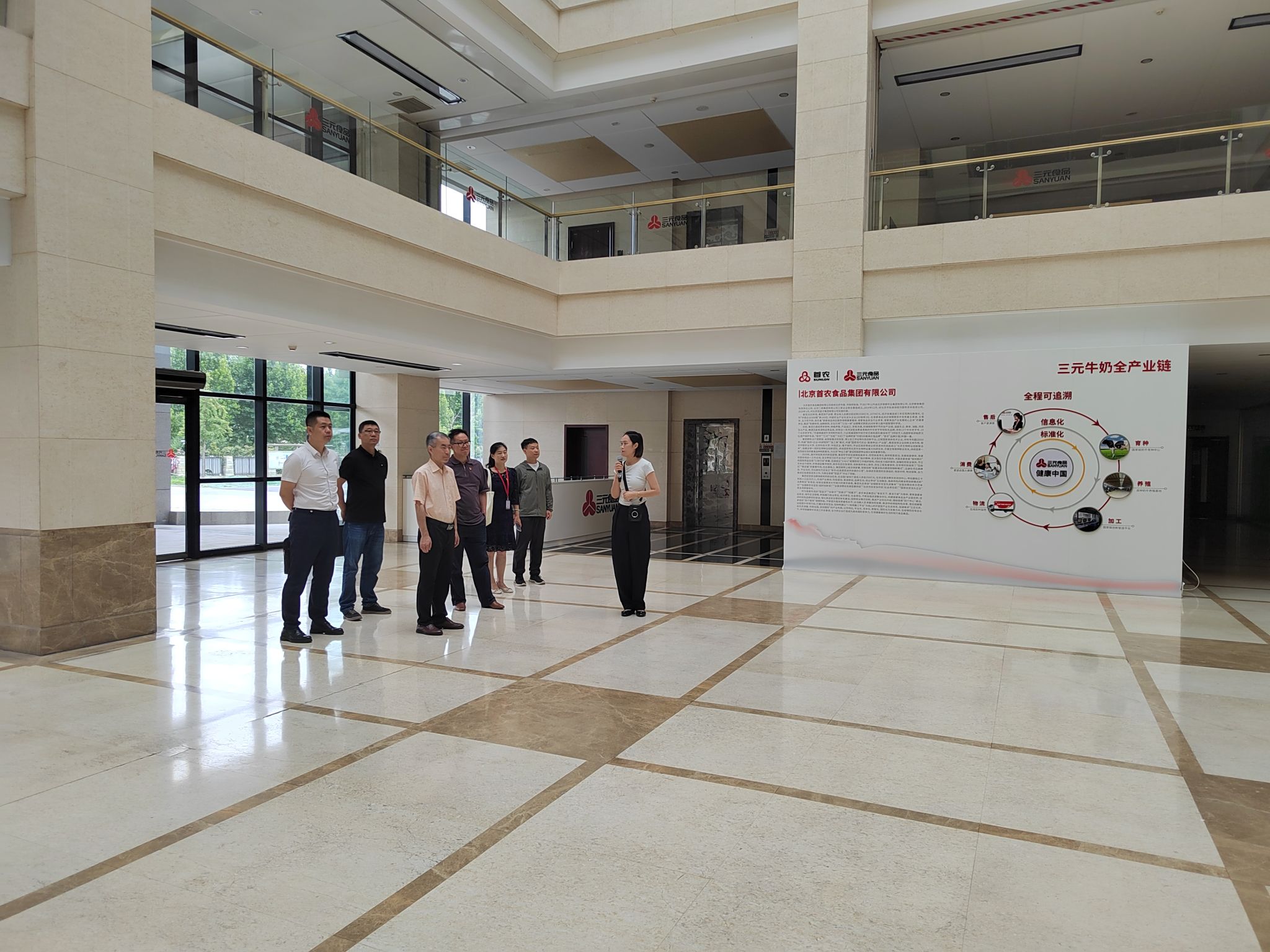孙占峰一行参观了三元食品的生产加工车间、国家母婴乳品健康工程技术研究中心。陈历俊详细介绍了北京三元食品股份有限公司的历史沿革和科研攻关情况,重点讲解了中心在科技成果产业化方面的典型经验。