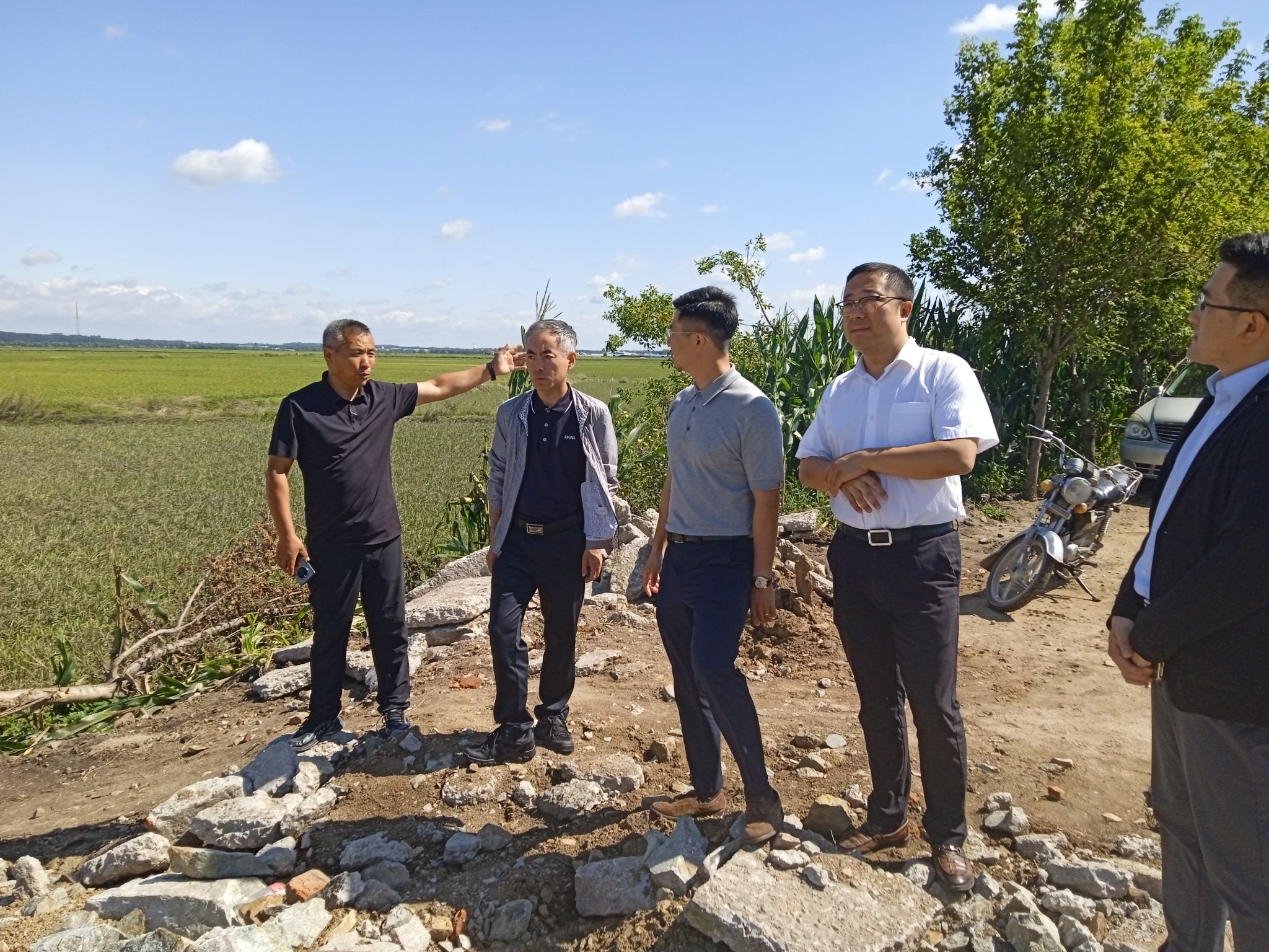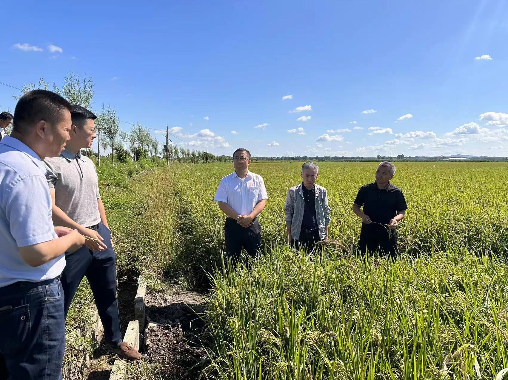 会后,孙占峰一行前往五常市杜家镇洪水过后的受灾稻田区域进行了实地走访调研,了解各类地块的受灾程度以及灾后的科技助力需求,并针对当地灾情提出相关指导建议。
