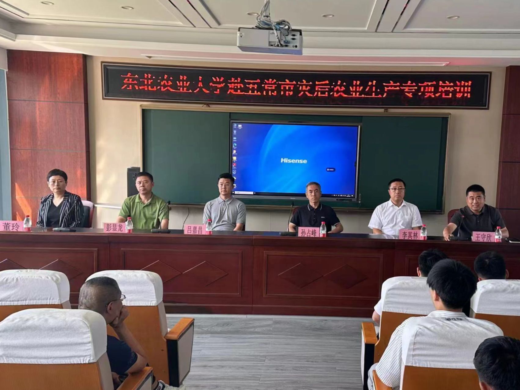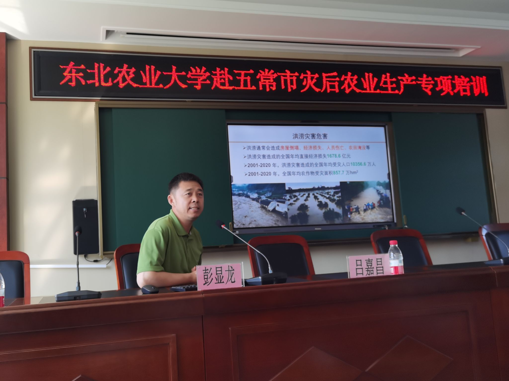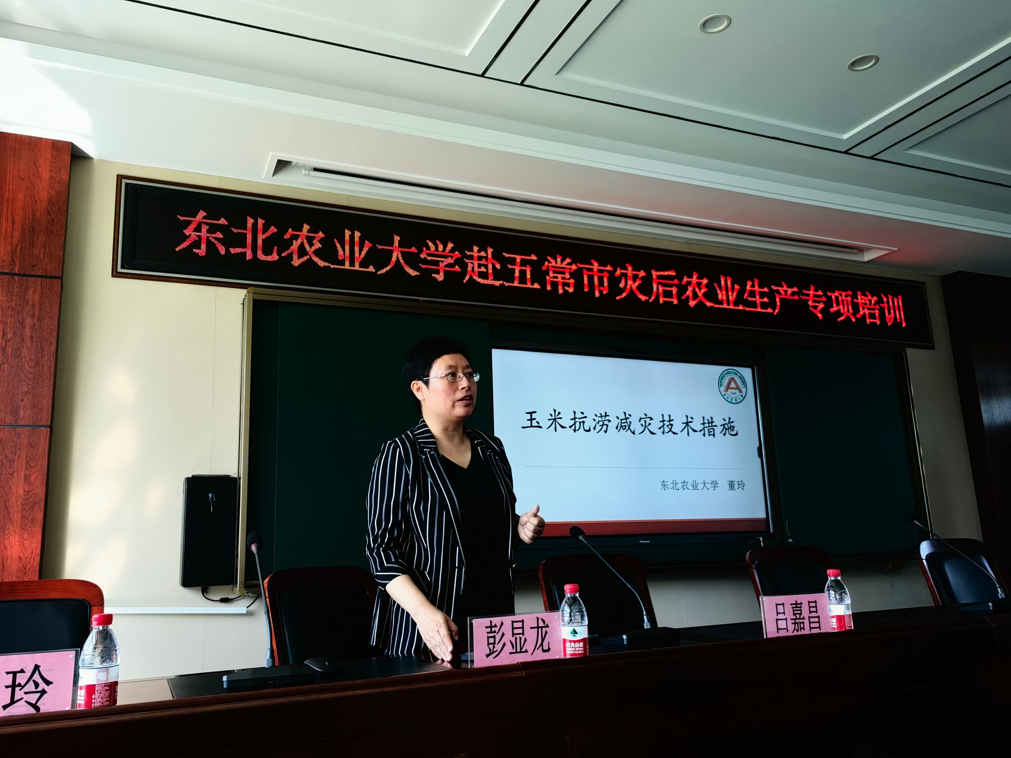 会上,彭显龙和董玲分别针对水稻洪涝灾害后的田间管理和玉米抗涝减灾技术措施向五常市各乡镇农业主管领导、各合作社负责人、水稻种植大户近百人进行了专项培训,培训学员基本覆盖五常市因洪涝灾害受损的全部经营主体,为灾后的保产和急救措施提供了东北农业大学的科技支撑。