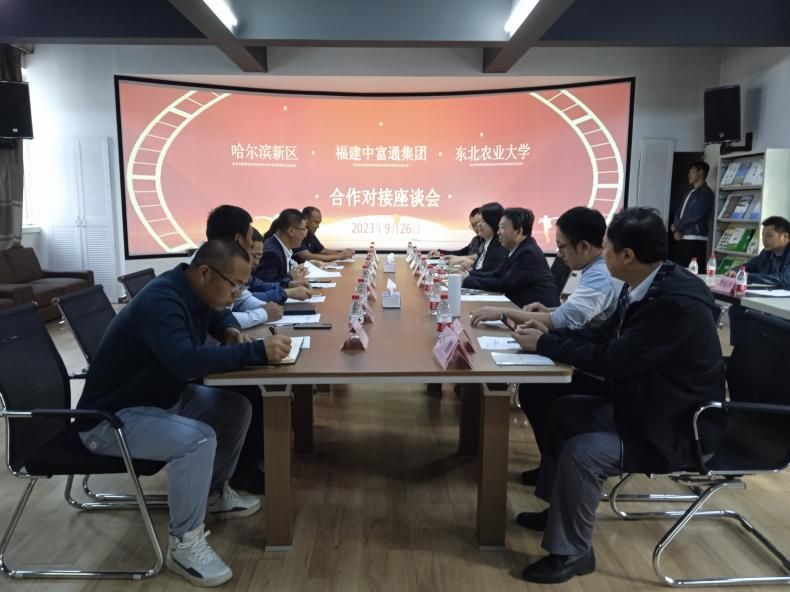 为深入贯彻落实习近平总书记加快建设农业强国,推进农业农村现代化的重要指示精神,促进学校智慧农业相关领域科技成果转移转化,强化校地、校企深度合作,助力哈尔滨新区农业产业发展,9月26日,哈尔滨新区党工委委员、松北区委常委、组织部部长万炳睿,哈尔滨新区招商集团副部长李丹、中富通集团股份有限公司总裁朱小梅、中富通集团平元科技公司总经理张建、中富通集团平元科技公司总工陈先财等一行8人来我校开展合作对接。社会合作与成果转化中心(新农村发展研究院)副主任(副院长)宋珲、植物保护学院教授陈宇飞、副研究员韩玉军、电气与信息学院副教授董守田、社会合作与成果转化中心(新农村发展研究院)讲师孙文鹏、企业孵化科科长滕玉文、党政综合科科长杨彦光参加了合作对接座谈会。会议由宋珲主持。