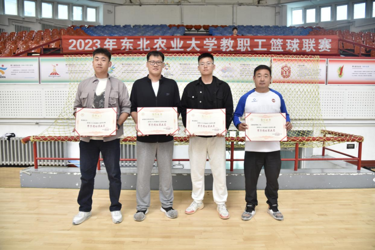 9月28日,由校工会主办的“2023年东北农业大学教职工篮球比赛”顺利完成各项赛程圆满落幕。本次比赛历时两周,共有19家基层单位组成的16支队伍参赛,参赛教职工160余人。校工会常务副主席杨石穿、体育教研部党总支书记金大伟等参加闭幕式,并分别为获奖单位颁奖。