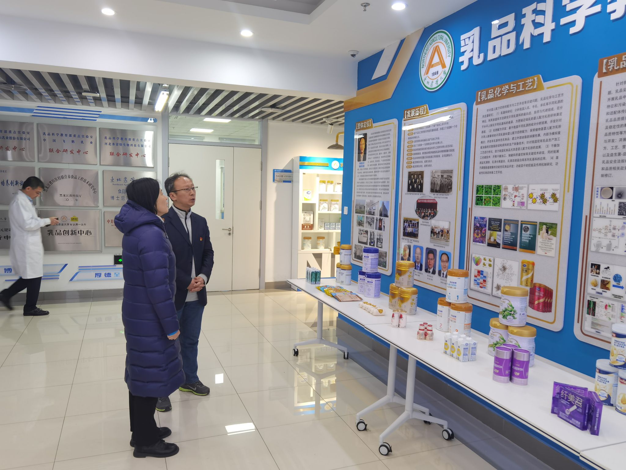 在学校调研期间,方晓华一行首先来到公共基础实验中心,深入乳品科学教育部重点实验室、大豆生物学教育部重点实验室,听取实验室负责人就实验室建设发展、科技创新、成果转化等方面情况的汇报,并深入到实验室及成果展厅实地察看。