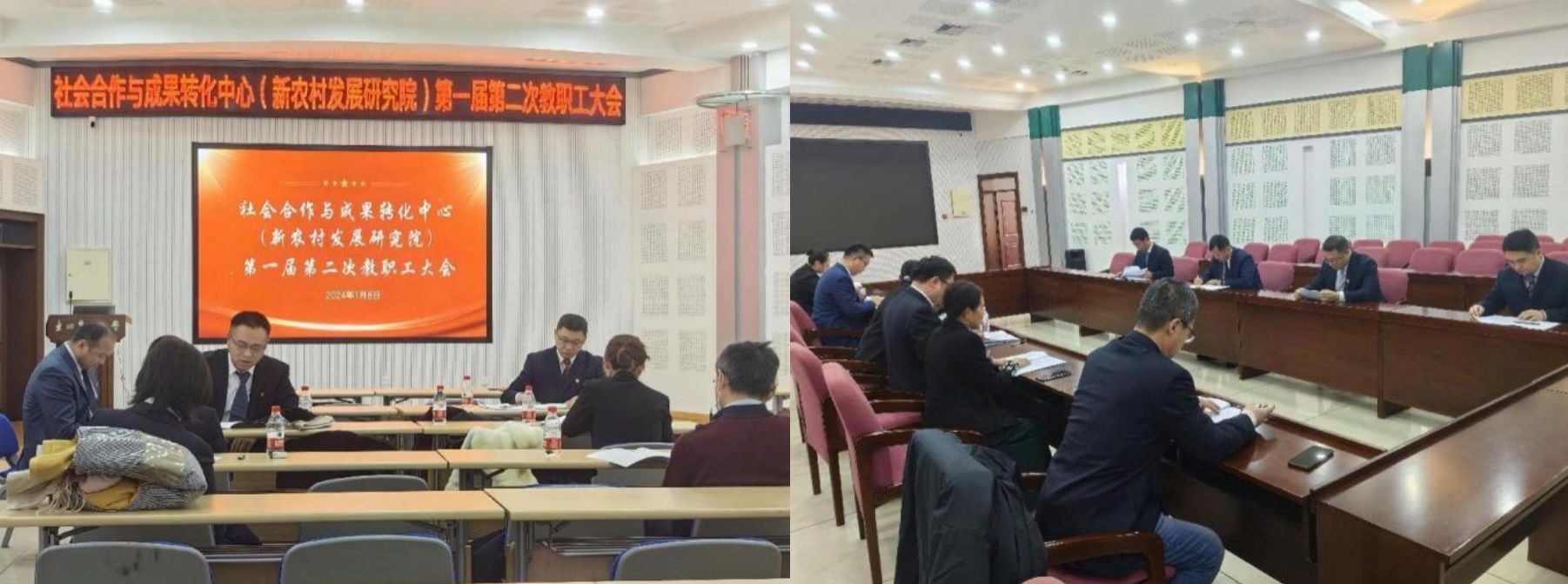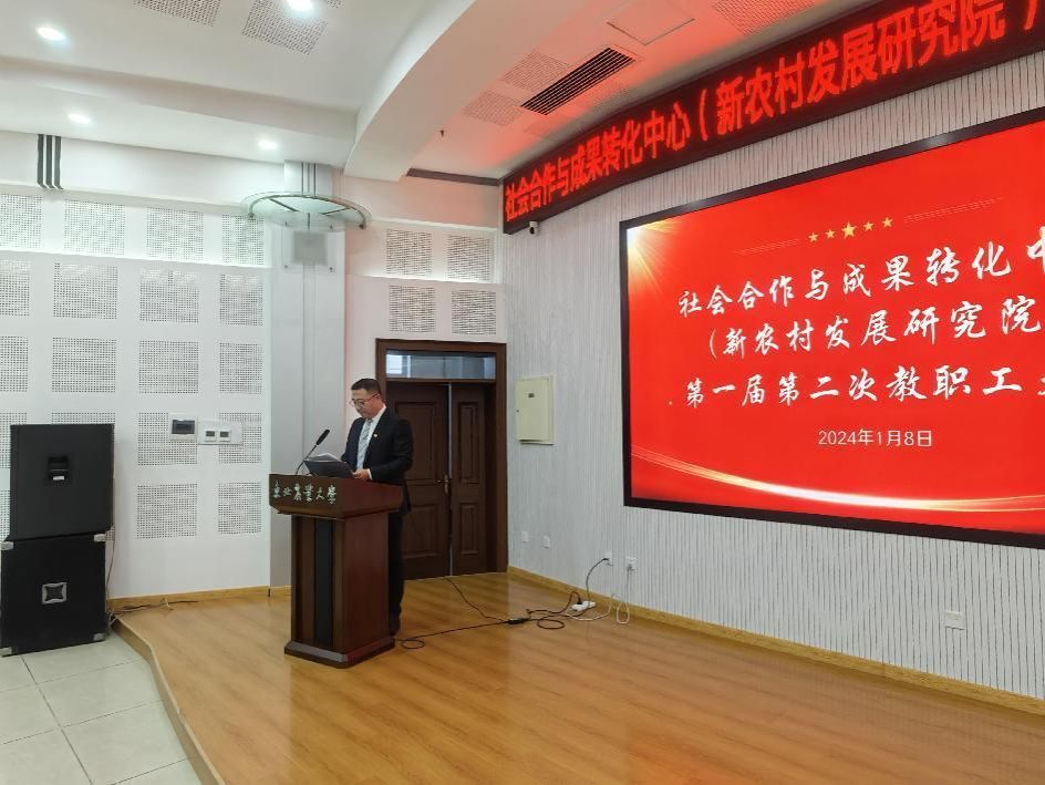 1月8日下午,社会合作与成果转化中心(新农村发展研究院)第一届第二次教职工大会在图书馆227会议室召开。社会合作与成果转化中心(新农村发展研究院)领导班子、全体教职工参加会议,会议由中心副主任(副院长)、工会主席李其林主持。