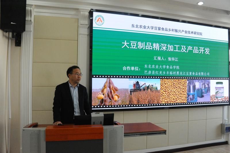 会上,首先观看了东北农业大学宣传片和巴彦大豆招商宣传片。随后,东北农业大学食品学院的专家分别介绍了大豆深加工项目前期规划及产品研发情况。与会双方人员就下一步推进大豆深加工项目和县校合作进行座谈交流。李其林建议巴彦县对学校专家教师帮扶其产业发展的连接机制进行探讨,并要对产业发展的内核进行深入思考。他表示,东北农业大学农业领域学科较为齐全,将针对巴彦县域发展存在的问题进行一一解决,助力县域的农业产业发展。