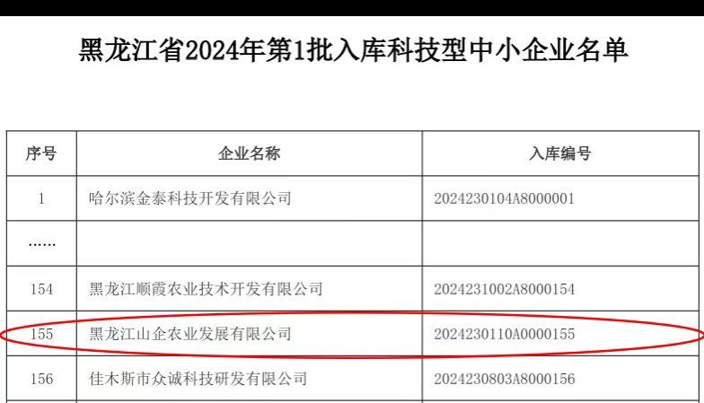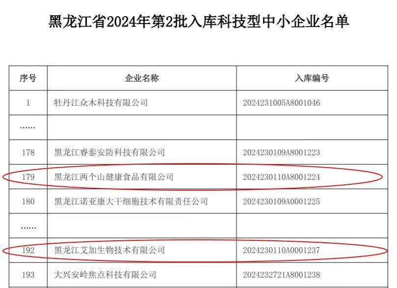 经企业自主评价、评价工作机构形式审查等程序,近日,黑龙江省2024年第1批、第2批入库科技型中小企业名单公布。黑龙江山企农业发展有限公司、黑龙江两个山健康食品有限公司、黑龙江艾加生物技术有限公司等3家科技园孵化企业被认定为科技型中小企业。
