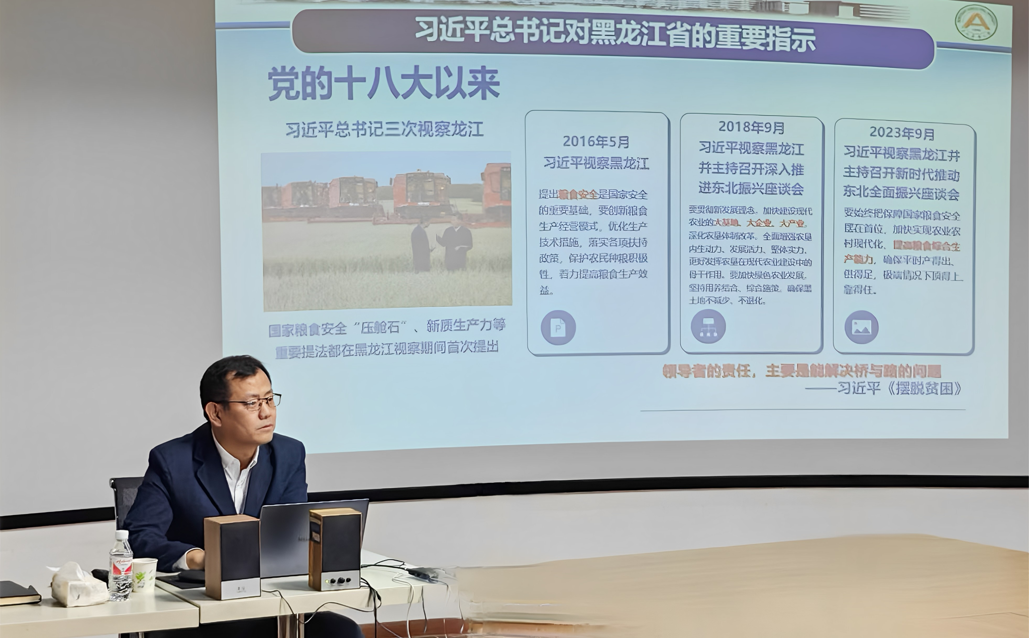 本次专题党课内容丰富,数据详实,朱志猛通过深入浅出的方式,坚持用党的创新理论武装头脑、指导实践、推动工作,引领大家感悟东农精神在龙江农业现代化发展中发挥重要作用的同时,切实增强了全体职工爱校荣校的责任感和使命感,坚定了为乡村全面振兴事业奋斗的决心和信念。接下来,社会合作与成果转化中心(新农村发展研究院)将不断加强自身建设,提升业务能力,提高服务水平,推动科技成果留省转化,助力地方经济高质量发展,为推动世界一流学科和省高水平大学建设贡献智慧力量。
