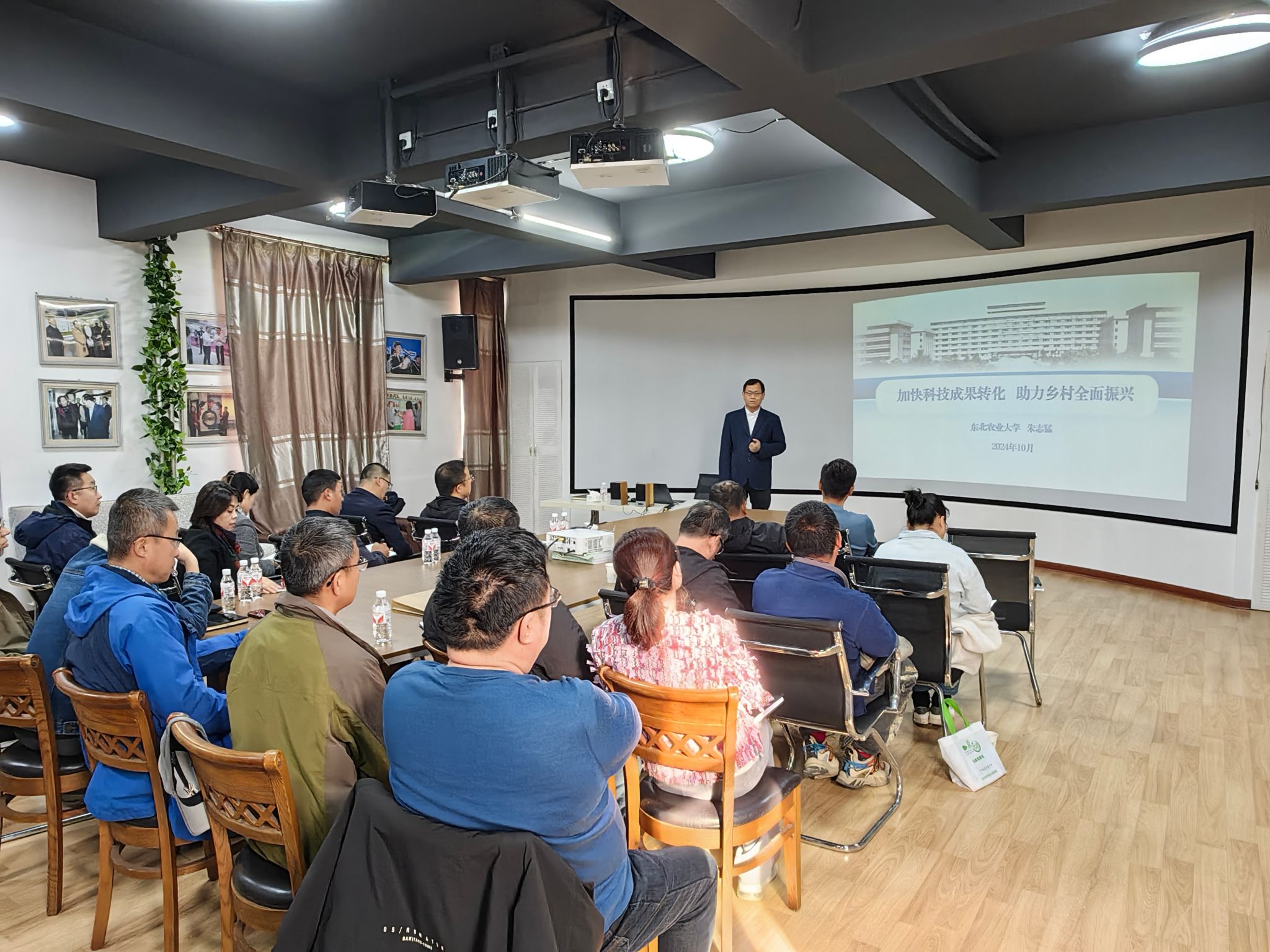 朱志猛立足我省农业发展现状及地域资源禀赋,深入解读习近平总书记视察龙江期间重要讲话重要指示精神,梳理我省农业优势,挖掘龙江农业潜能。他围绕新质生产力理论的提出背景、内涵、核心要素等进行系统分析阐述,为指导新时代农业科技现代化发展提出了可行路径。他聚焦确保国家粮食安全,确保不发生规模性返贫,提升乡村产业发展水平、建设水平和治理水平,加强党对“三农”工作的全面领导等六个方面,全面、细致地解读了中央一号文件精神,并以甘南县合作共建为案例,分享了学校社会服务的典型经验做法,展示了学校在助力乡村振兴方面所取得的显著成效,提出了以“助推赋权改革、促进成果转化”为重点,坚持党的领导、深化务实合作、打造人才队伍,推进“产学研用”与国家战略、社会需要高度融合,以高水平社会服务助推区域经济社会高质量发展的中心工作目标。朱志猛强调了解放思想谋发展的重要性,鼓励全体人员要勇于担当、积极作为,不断创新工作思路和方法,加强与地方政府、科研机构和企业的务实合作,推动学校科技成果转化为现实生产力,贯彻落实党中央和省委决策部署,聚焦经济建设主战场,加快发展新质生产力、促进成果转化、推进乡村全面振兴,为实现中华民族伟大复兴而奋斗。