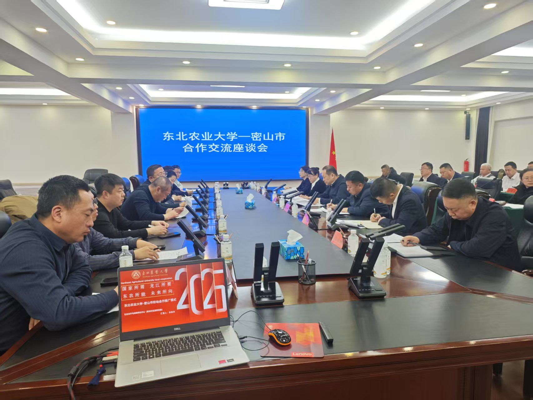 会上,李其林对调研情况、合作模式、成果案例以及合作规划进行了汇报,总结了调研成效,梳理了合作抓手与方向,并介绍了学校长期以来取得良好成效的“基地+中心+产业联盟”校地合作“东农模式”。
