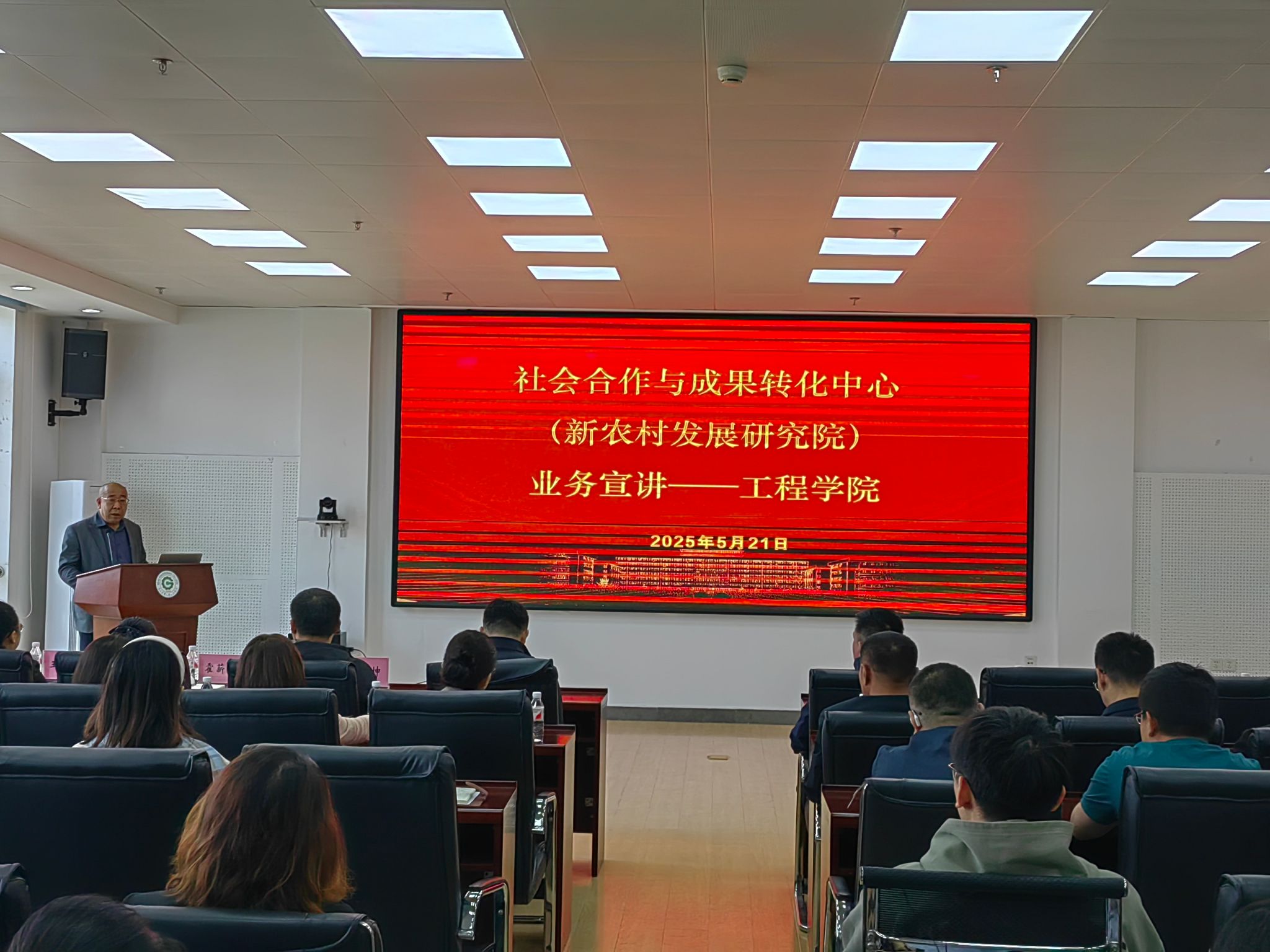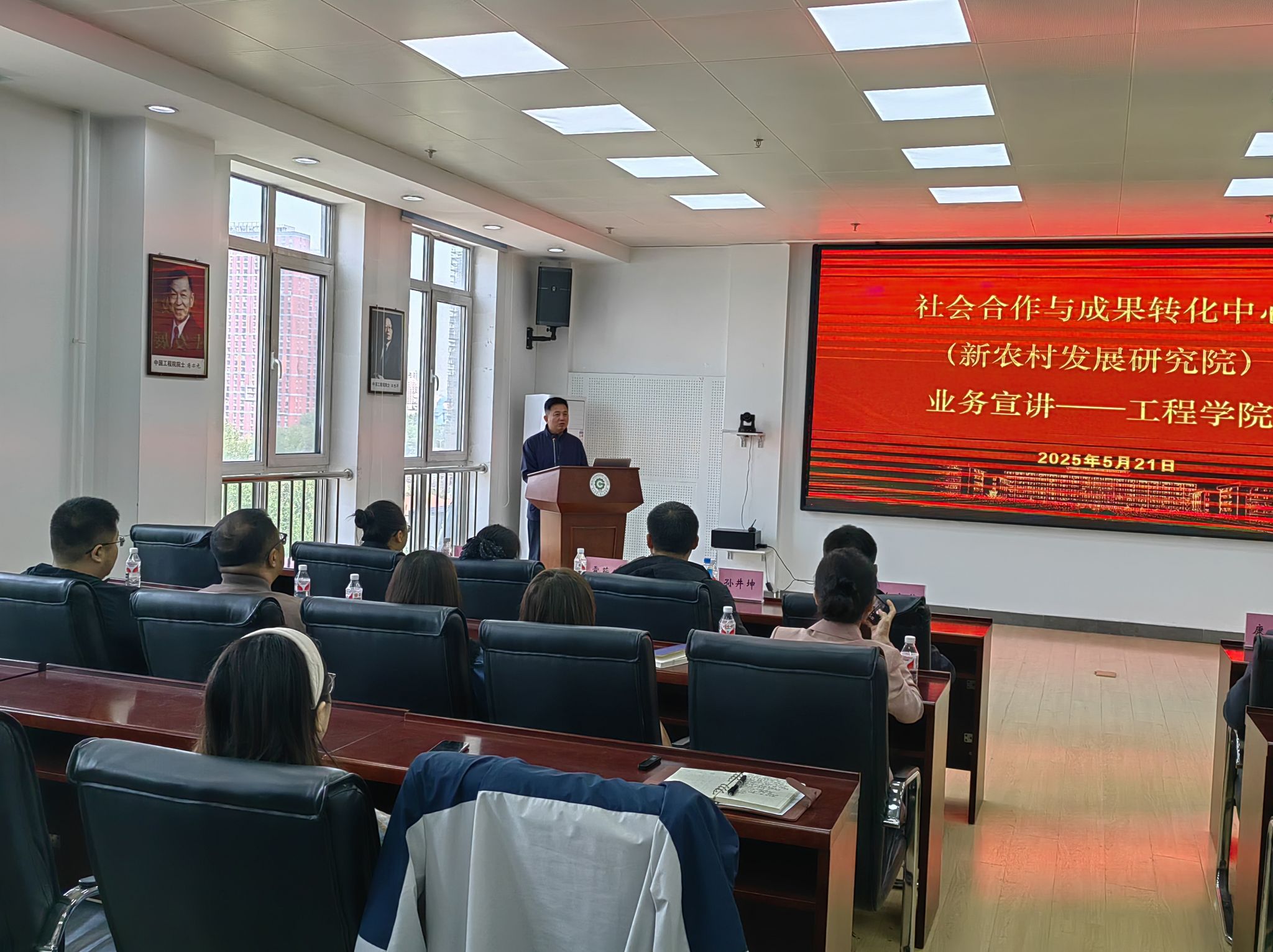 5月21日上午,社会合作与成果转化中心(新农村发展研究院)到工程学院业务宣讲。工程学院党委书记黄步海、院长李岩、社会合作与成果转化中心(新农村发展研究院)副主任(副院长)康立功参加会议。黄步海主持会议,康立功讲话。