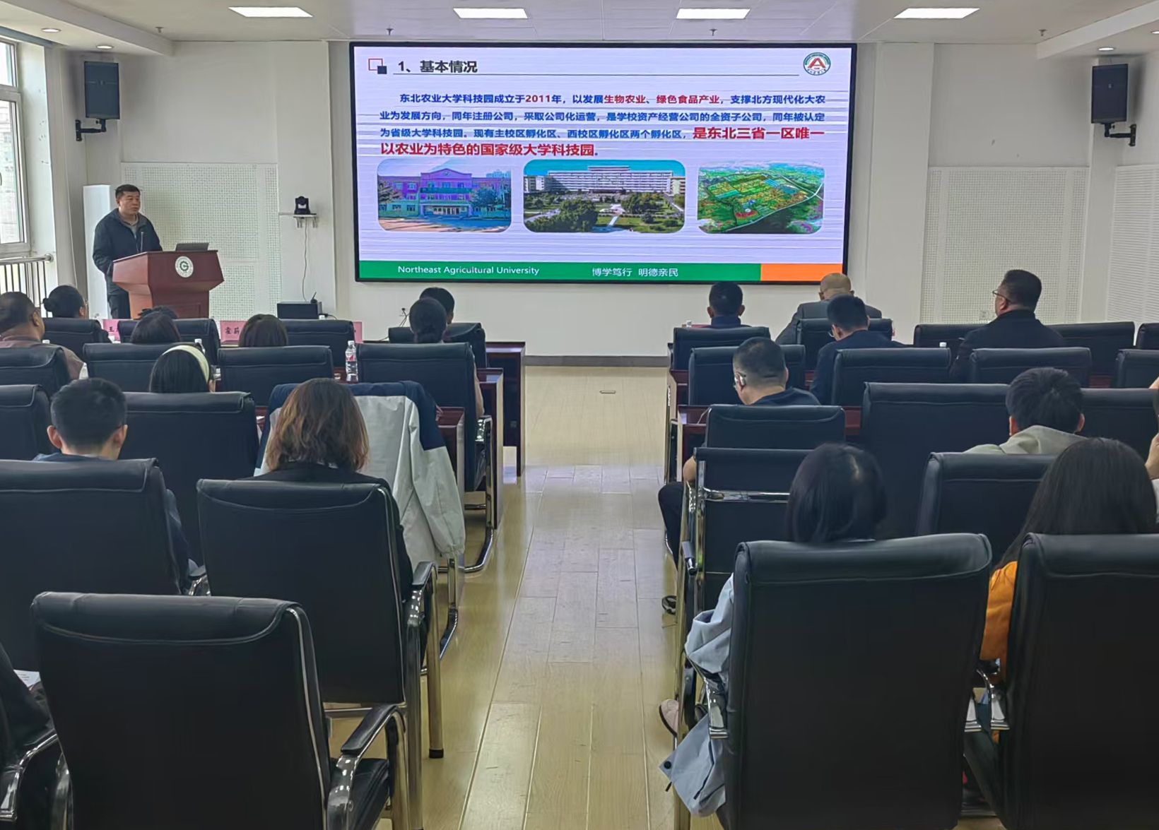 企业孵化科科长孙井坤介绍东北农业大学国家大学科技园功能定位、取得的成绩和相关案例,并对一站式服务、投融资服务、知识产权服务、创新资源对接服务、企业成长服务及相关流程详细讲解,希望与工程学院各位老师携手并肩,孵化出更多高成长性企业,为学校“双一流”建设注入强大动力,为区域经济发展贡献智慧力量。