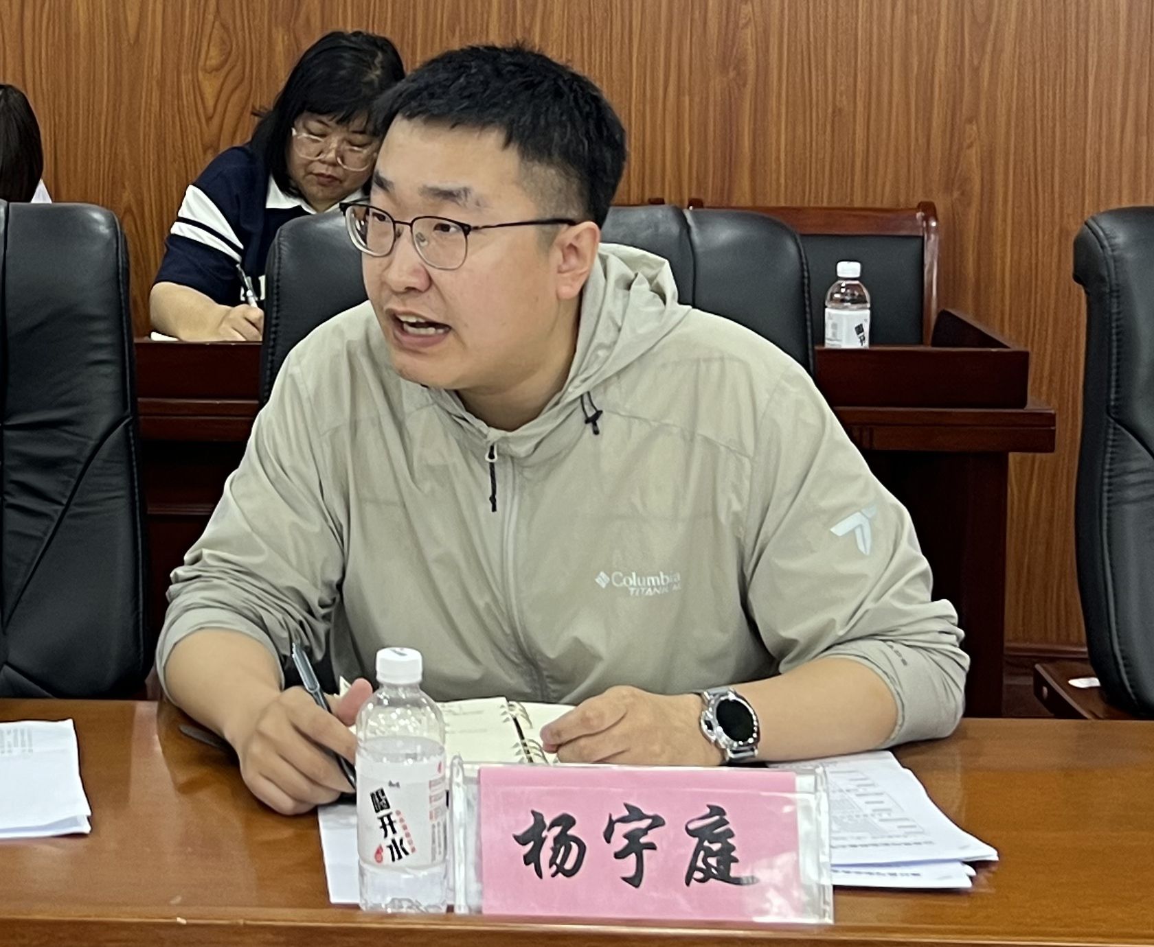 杨宇庭介绍校地合作情况,发挥学校的科技和人才优势做好成果示范、成果培育、人才培养和农技培训情况。