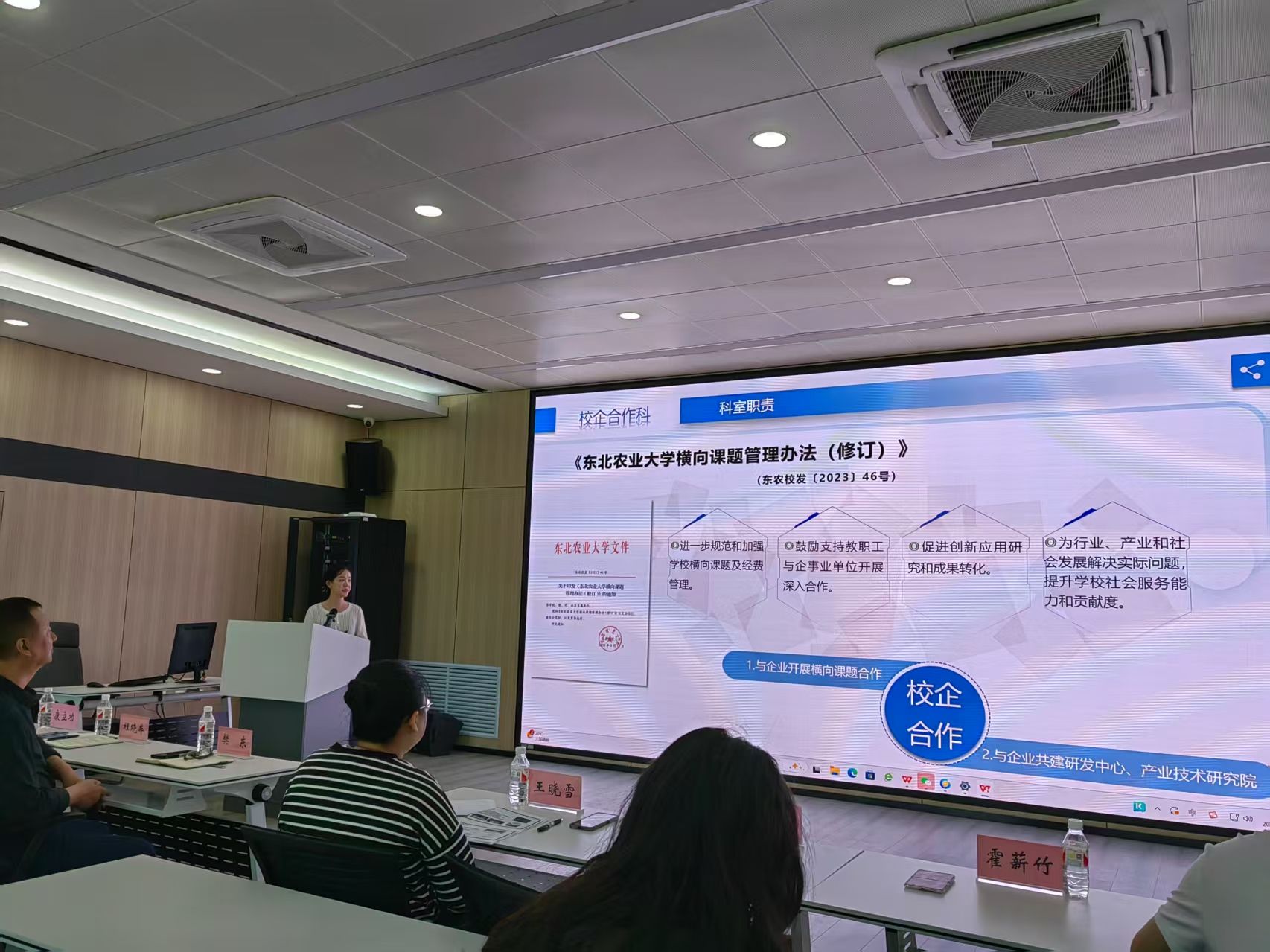 杨宁宁介绍东北农业大学国家大学科技园基本情况、功能定位、工作成绩、典型案例、服务内容、入驻流程、基础孵化、金融投资支持等方面情况。