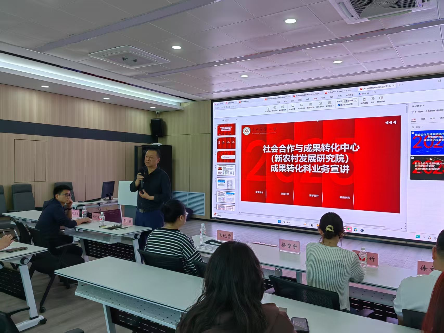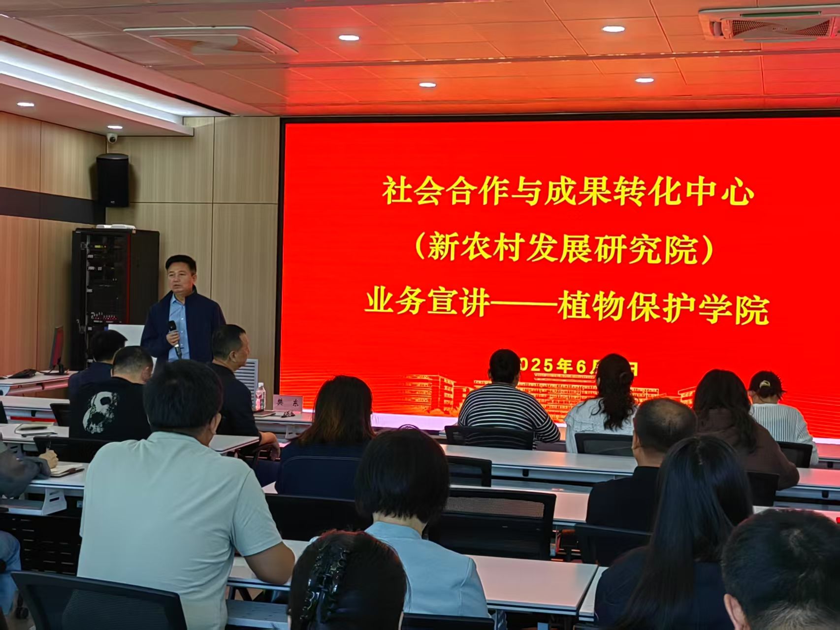6月4日,社会合作与成果转化中心(新农村发展研究院)到植物保护学院业务宣讲。植物保护学院院长樊东、副院长程晓非参加会议,社会合作与成果转化中心(新农村发展研究院)副主任(副院长)康立功主持业务宣讲,校地合作科科长徐文越、成果转化科负责人王晓雪、校企合作科负责人霍薪竹、企业孵化科杨宁宁分别进行业务宣讲。
