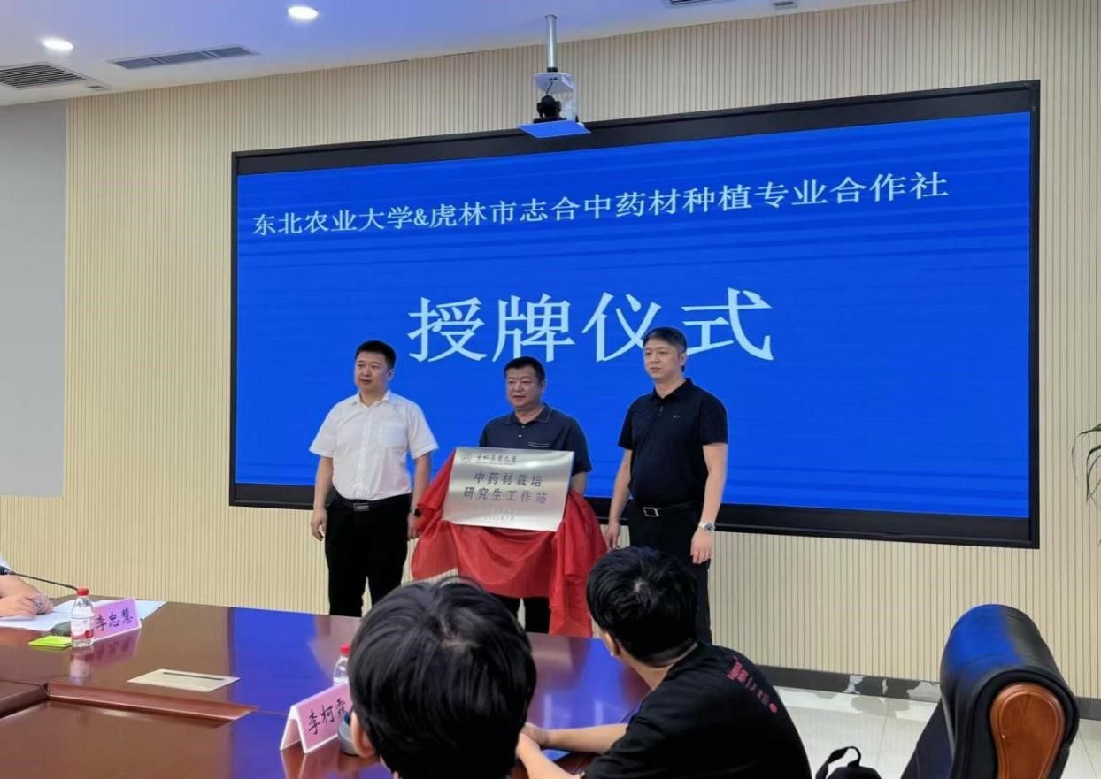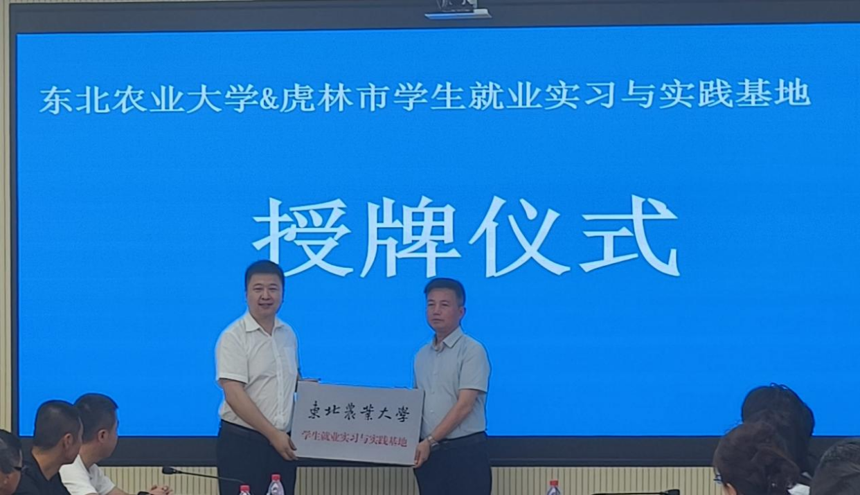 会上,李卡与曾祥海共同为虎林市中药材栽培省级研究生工作站揭牌;康立功为共建学生就业实践实习基地授牌。