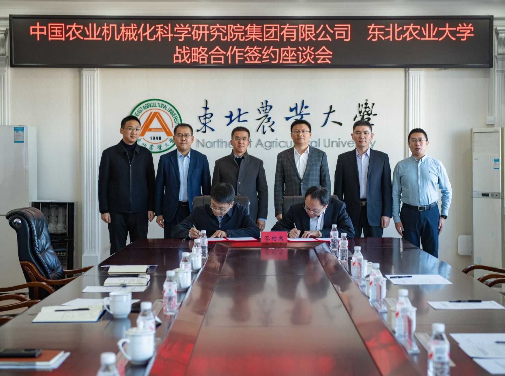 孙世钧和赵博分别代表东北农业大学和中国农业机械化科学研究院集团有限公司签署了战略合作协议。