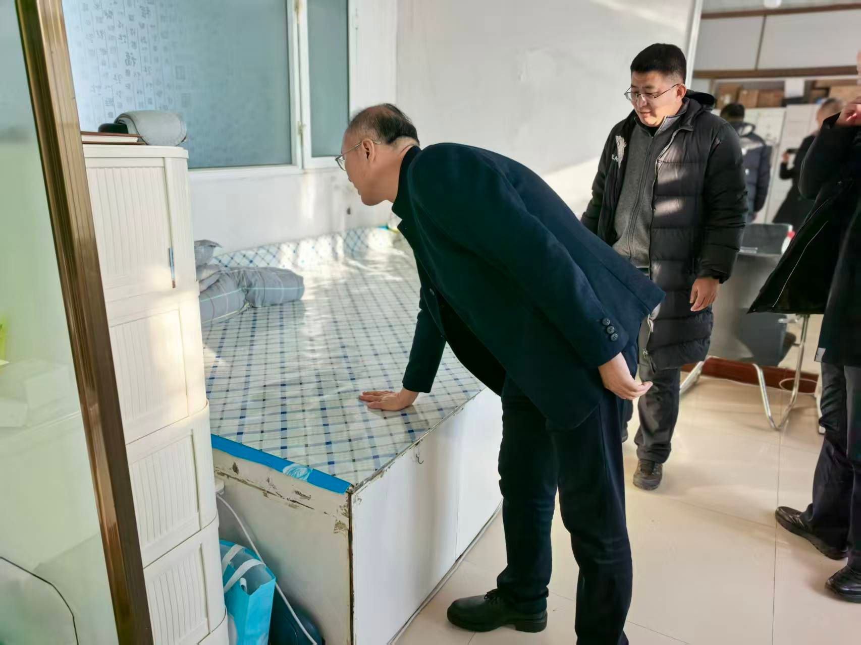 离开作坊,付强又来到驻村队员的住处。屋里干净亮堂、暖气烧得正旺。付强摸了摸热乎乎的炕头,看了看厨房——案板上摆放着学校这次带来的米、面、油、肉等生活物资。“这些是学校的一点心意,过日子都用得上”付强指着那些物资,语气家常,“住得暖、吃得好,干活才更有劲,心里才更踏实。有啥困难随时跟学校说,学校就是你们的后盾,但是——”他话锋一转,“你们也得把村里当自己家,把乡亲们当自家人。”