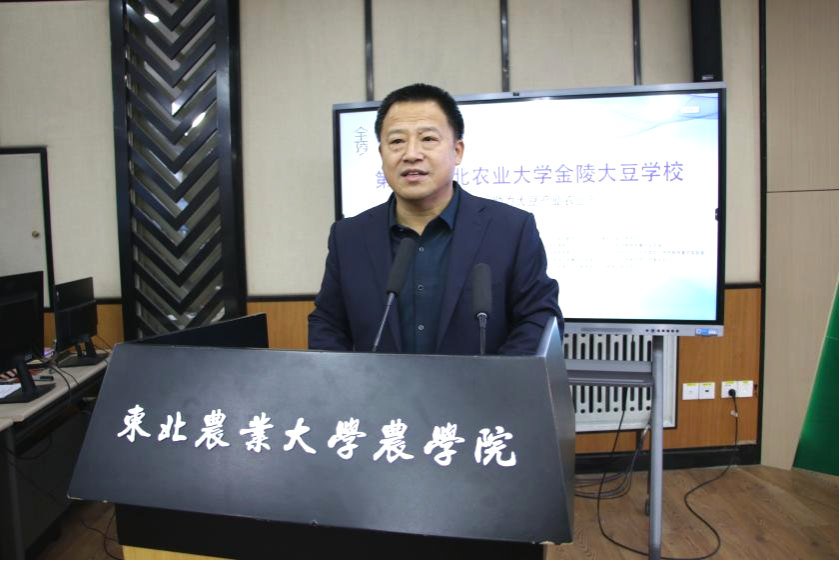 12月11日,第五届东北农业大学金陵大豆学校开班式在农学院举行。国家大豆产业技术体系首席科学家吴存祥研究员,哈尔滨市科学技术协会副主席高文键、科普处处长马叶林、四级调研员于广涛,我校副校长陈庆山、老科技工作者协会副会长杨兴武,农学院党委书记李晓书、院长辛大伟、党委副书记马涛、副院长刘鑫、院长助理谢腾龙以及来自40余家单位的200余名学员参加会议。会议由社会合作与成果转化中心(新农村发展研究院)副主任(副院长)刘辉主持。