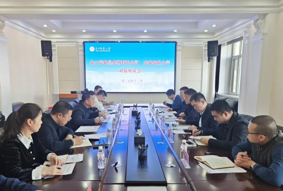 12月22日下午,北大荒农垦集团有限公司党委副书记、工会主席姜庆海,科技信息产业部总经理汪铎、农业发展部副总经理高世杰等一行6人来访我校,围绕“十五五”期间深化校企合作开展交流对接。副校长陈庆山、实验实习与示范中心主任王磊、社会合作与成果转化中心(新农村发展研究院)主任(院长)李其林、农学院院长辛大伟、科学技术处(社会科学处)副处长马靖林、继续教育学院副院长王秀艳、水利与土木工程学院教授杨帆、食品学院教授郭增旺等参加座谈会,会议由陈庆山主持。