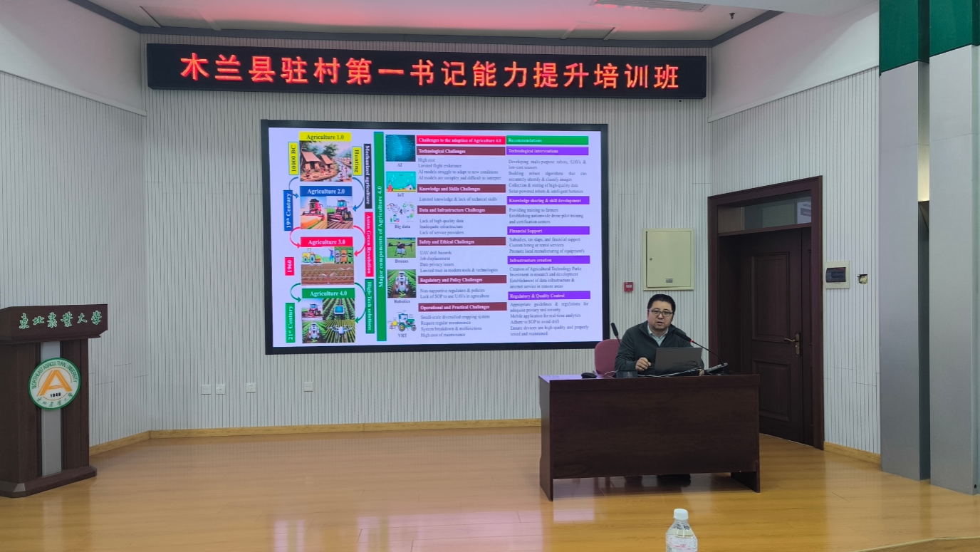 会上,我校三位教师分别围绕智慧农场建设之模型体系探索与思考、智能农业装备研发与应用、寒地特色园林花卉研究进行讲授,课程紧扣智慧农业发展趋势,结合木兰产业实际,为学员带来发展现代农业、特色农业产业等助力乡村振兴的实用科技成果。授课过程中,学员与教师互动踊跃、交流深入。