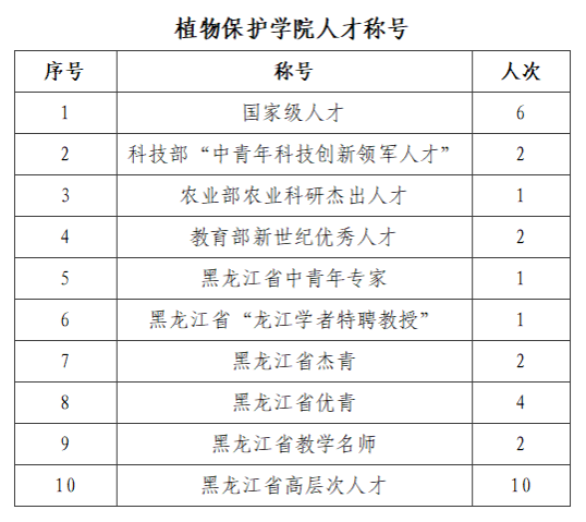 人才是衡量一个学院综合实力的重要指标,也是创新活动中最为活跃、最为积极的因素。学院坚持新时代人才强院战略,聚焦“高层次人才集聚、高素质‘双师’培育、高水平团队打造”等三大领域,抓好“引才、育才、用才”三个关键环节,积极打造结构合理、业务优良、作风过硬的创新人才队伍。目前有国家自然科学基金杰出青年基金获得者、国家自然科学基金优秀青年基金获得者、教育部特聘教授等国家级人才6人次,科技部“中青年科技创新领军人才”、农业农村部农业科研杰出人才、黑龙江省“龙江学者特聘教授”等省部级人才25人次。