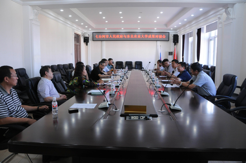 8月30日下午,七台河市人民政府与东北农业大学成果对接会在我校召开。七台河市委副书记、市长韩立华,勃利县县长邵洪杰,勃农兴达机械有限公司董事长李金泽;我校党委书记冯晓,副校长郑秋鹛,科技处处长焦光纯,新农村发展研究院执行院长吴永清,工程学院教授赵匀、党委书记王锡胜、院长陈海涛,新农村发展研究院副院长寇胜利出席会议。