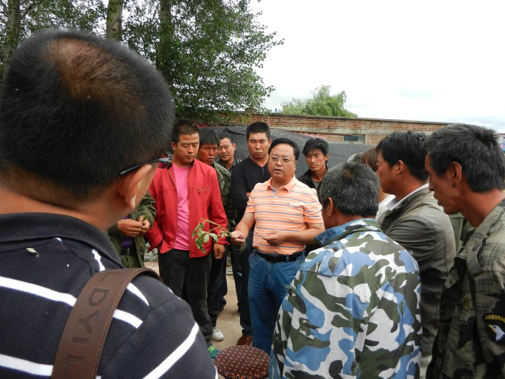 赵奎军教授为农户现场讲解大豆害虫防治技术