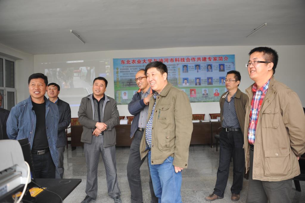 7日上午,在讷河市,我校一行参观了二克浅镇合发村科技合作共建马铃薯示范园区、讷河市现代农业园区、科技共建专家大院,并与讷河市副市长赵友、我校挂职副市长单德鑫及市畜牧兽医局、农机局、科技局、农业技术推广中心等部门负责人进行了座谈。吴永清介绍了我校新农村发展研究院的基本情况,希望通过此次对接,能够深入了解市里的具体需求及对我校社会服务工作的建议和想法,在下一步的合作共建工作中能够更加有针对性地开展科技服务。赵友回顾了我校与讷河市合作的历史,非常感谢学校多年来对讷河市农业、农村发展的大力支持,并对我校挂职科技副市长单德鑫在建设专家大院、示范园区及组织实施科技项目等方面取得的成绩给予充分肯定。同时,提出了在马铃薯病毒检测及畜牧水产等方面技术培训、专家与合作社及农业大户对接平台建立、学校科研成果转化基地建设等方面提出了下一步工作的具体想法。随后,市里相关部门结合各自工作,从科技人员培训、玉米优良品种、甜菜病虫害防治、马铃薯不同类型品种及收获机械等方面提出了具体需求。