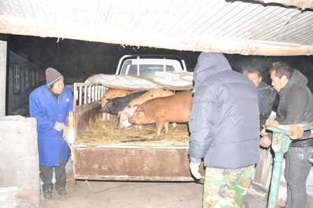 12月6日,我院在望奎县挂职科技副县长寇胜利、“龙江三花猪”养殖专家刘洪贵博士、科技推广部部长贾树英等赴望奎县,将15头“龙江三花猪”送到养殖示范户。刘洪贵从饲料饲喂、科学饲养、疫苗选择、疫病防治等方面为示范户进行了现场指导,指出了冬季饲养应注意的事项。推广示范运行中,采取“大学+示范户”、“专家+养殖户”模式,大学提供仔猪,养殖专家全程提供标准化饲养、疫病防治等管理程序及方法,示范户具体负责提供圈舍、饲料、人工等。