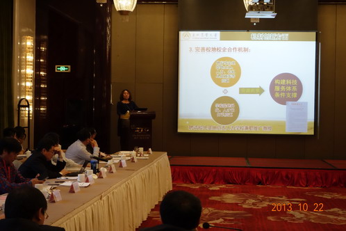 随后,首批试点的10所新农村发展研究院高校围绕各自建设经验进行交流汇报,郑秋鹛副校长代表我校从“科学谋划,合理布局,统筹推进科技示范推广基地建设;积极探索,勇于实践,有效推动科技服务模式运行机制创新;整合资源,健全机制,深化体制机制改革”三个方面汇报了东北农业大学新农村发展研究院建设工作取得的成绩、经验及下步工作重点。