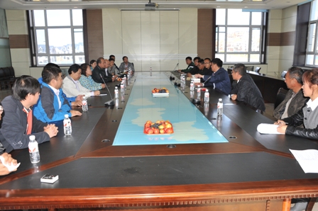 随后,我校专家组与852农场在852农场农业研发中心办公楼3楼会议室召开了座谈会。852农场党委书记吴转丰、农业研发中心主任宋北光及相关工作人员参加了座谈会。座谈会上,吴转丰首先介绍了我校2013年在852农场实施的玉米、大豆子课题项目的运行情况,示范效果、技术推广等方面的整体情况。他表示,学校充分结合852农场的区域特点和种植结构选择的玉米、大豆两大作物的一系列试验项目具有很好的代表性和推广价值。一年来,学校专家与农场技术员在田间管理、现场指导、技术培训等方面紧密合作,项目取得了预期效果,农户反映良好。希望在下一年,学校与农场能够继续合作,既能将2013年实施效果明显、推广潜力较大的项目扩大推广面积继续实施,又能结合学校科技优势、优秀科研成果选择新的项目在农场进行试验示范,从而推动场校深入合作,促进高校科技成果在农场的推广转化,为农场农业发展提供科技助力。我校农学院院长、水稻子课题首席专家邹德堂教授介绍了水稻子课题项目的运行情况、实施效果和遇到的问题。希望在2014年,能够结合852农场水稻种植特点,在农场开展项目实施。农学院副院长、玉米子课题首席专家杨德光教授在总结2013年玉米子课题项目实施情况的基础上,针对项目实施的合作方式、下一年项目选择,运行方式等问题提出了意见和建议。