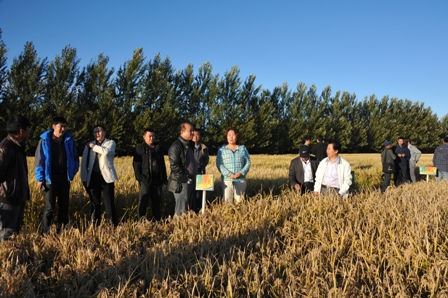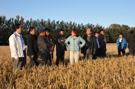 9月25日,我校专家组一行来到了水稻子课题项目实施地点—农垦建三江管理局大兴农场。大兴农场场长高明涛、副场长魏玉光、农业科技园区主任高海军等陪同检查。郑秋鹛副校长带领专家逐一查看了在大兴农场实施的“优质超高产粳稻品种筛选与改良推广”、“粳稻高产及防病健身关键技术”、“建三江分局水稻节水控制灌溉技术示范及其综合效益评价”、“应用生物等综合技术措施安全恢复作用改茬轮作种植强化持续连作种植(连作水稻方向)”、“寒地直播稻农机农艺结合的高产高效技术”、“粳稻水肥优化技术”等6项水稻子课题项目,开展了项目测产、数据采集等工作。水稻子课题首席专家邹德堂教授现场介绍了2013年水稻子课题项目的整体运行、技术推广等情况及遇到的一些问题,并对下一年项目实施的整体布局、地块选择、合作模式提出了意见和建议。