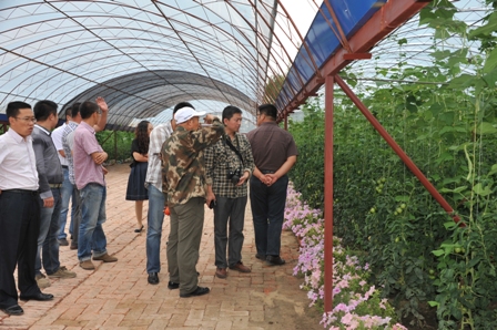 我校专家查看八井子乡连栋冷棚精品园区