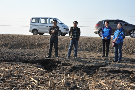对接结束后,专家组一行来到实施我校项目的科技园区和一中园区,查看地块和整地情况。孙磊副教授实地选取了一中园区的土样,准备回校进行土样分析。刘立意高级工程师针对一中园区因今春桃花水水量大,冲刷土地后形成沟壑并造成水土流失的情况,表示将在一中园区实施玉米垄沟筑垱技术,防治水土流失。