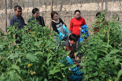 4日下午,我校专家组来到林甸县,与林甸县科技局进行了工作对接。大家深入到四合乡润琦棚室基地,实地查看基地建设规模,了解种植结构,并深入到园艺学院试验示范的番茄棚室查看长势。2013年,该棚室示范了番茄东农711、东农717、东农719、东农720、东农723等多个品种,目前番茄长势喜人,5月底将成熟。我校李景福教授曾多次深入到润琦基地,亲自指导番茄移栽,为基地技术员及工人开展技术培训。孙占海结合林甸县大力发展棚室果蔬产业及润琦基地建设规模和内容,表示要进一步强化“大学+科技局+企业”的合作模式,得到科技局局长吕德军的赞同。日后,该模式将在四合乡润奇棚室基地进行试验探索,并以番茄示范为切入点,逐步扩展到我校西甜瓜、黄瓜等其他果蔬品种。