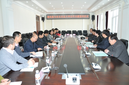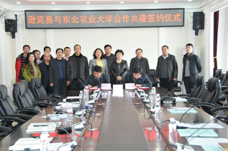 接着,姜晓刚县长与冯晓副校长分别代表县校双方签订了《逊克县与东北农业大学合作共建协议书》。签约结束后,县校双方进行了座谈。冯晓副校长在讲话中表示,县校合作共建协议的签订,体现了逊克县委县政府对学校的信任和对当地农业发展的高度重视,我校将以与逊克县的合作为纽带,充分发挥学校多学科、多专业、多领域的科技和人才优势,促进学校优秀科技成果在逊克县的示范推广,为逊克县农业发展提供强有力的科技支撑。一是规划引领,在示范园区建设上,发挥学校的人才优势,与逊克县深入研究,制定一个长远的、科学的发展规划,明确发展思路,充分体现逊克县“高纬寒地现代农业”的区域特色,带动示范园区提档升级;二是体制创新,在校县合作中,要加强体制机制创新,园区管理要探索企业化管理,市场为导向的运行机制,促进双方多领域的紧密合作,增强园区的发展活力;三是加强合作,要充分发挥学校在作物新品种、设施农业、配套技术、农产品加工等方面的科研、人才优势,加强与逊克县的全方位合作,促进地方协调发展。