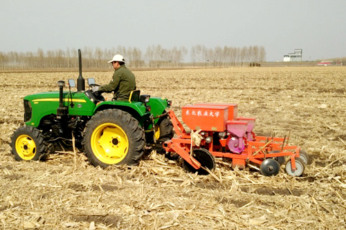 我校专家在望奎灯塔乡惠四村玉米免耕播种现场