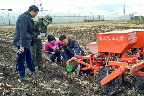 我校专家在嫩江县农业技术推广中心园区指导免耕播种