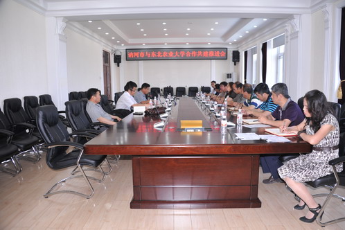 赵友代表讷河市委市政府对我校多年来对讷河市发展提供的支持和帮助表示感谢。赵友表示,开展校市合作共建以来,我校专家在讷河市实施了水稻施肥、作物高产等多个入户项目,对讷河市的县域经济发展、农民增收致富起到了重要作用。此次来我校,希望进一步推进合作共建工作,并具体落实选派讷河市技术人员来校进行短期培训事宜,希望我校继续围绕讷河水稻、马铃薯等主导产业提供科技支持。