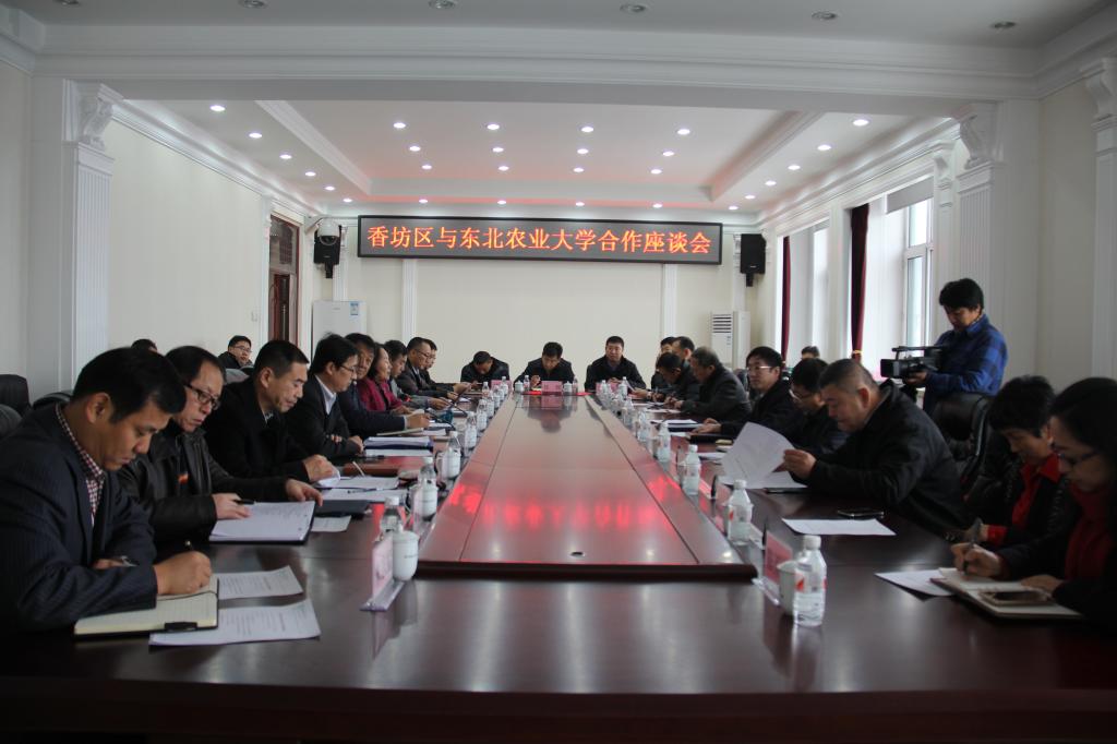 11月7日上午,香坊区区委副书记、代区长栾志成,区委常委、副区长赵罡,副区长徐强带领国土局、发改局、科技局、农林局、统计局、政府办、征收办、向阳镇政府、铁东街道办事处等相关单位主要负责同志一行18人,来我校对接洽谈科技成果转化落地工作及现场办公协调解决向阳基地建设、回迁居民安置等相关问题。我校党委书记冯晓,副校长郑秋鹛、王泽方,新农村发展研究院常务副院长孙占峰、副院长朱志猛,实验实习与示范中心主任徐金星,艺术学院党委书记王少逸,园艺园林学院副院长潘凯,食品学院副院长刁铁军等相关单位负责人参加了对接座谈,座谈会在主楼604会议室举行。会议由王泽方主持。