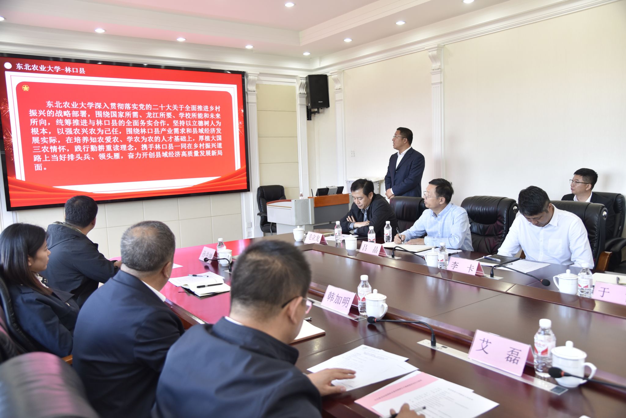 签约仪式上,双方共同观看了东北农业大学、林口县人民政府宣传片以及校县合作纪实宣传视频。学校社会合作与成果转化中心(新农村发展研究院)副主任(副院长)李其林汇报了校县合作进展及重点工作情况。
